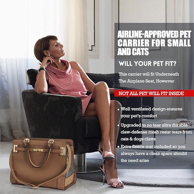 - β[ Airline-Approved ] The portable pet carrier purse suit for all airlines,you can makes it easy to take your small cat or dog on airplanes.Perfect for travel.Conforms to under-seat dimensions of most airlines. The Best Gift For Yorkie/Chihuahua/Teacup/Puppy/kitten Lovers.This bag every dog needs.