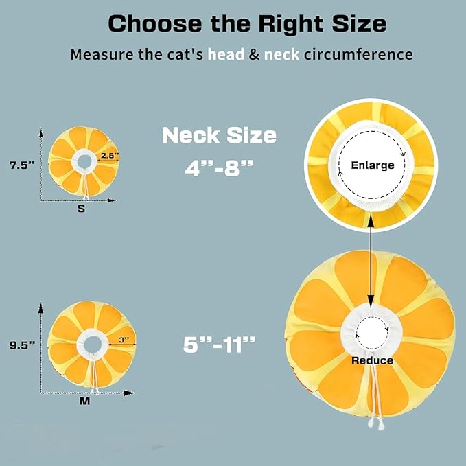 - Suit for all Size of Cats: We offer 2 sizes of cat cone, and the middle of each cone is adjustable, ensuring a definite fit for your cat. Size M fits (9.5 "x9.5 "x2.2‘’) cats with a neck circumference of 5-11 inches