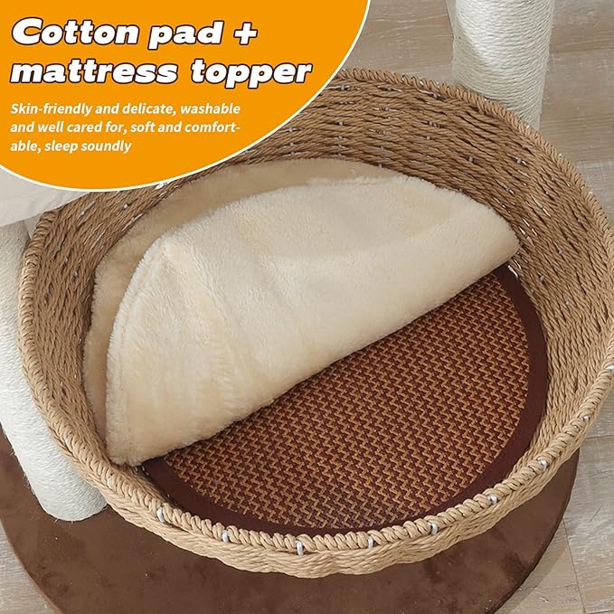 Modern Cat Tree Tower for Large Cats, Real Natural Sisal Luxury Cat Condo, Manual Hand Woven Wood Cat Tower, Indoor Cat Scratching Tree, New Cat Condo Lover Gift