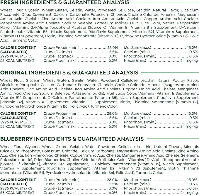- Treat your dog fantastically with three GREENIES Treats varieties: Original Flavor, Fresh Flavor and Blueberry Flavor