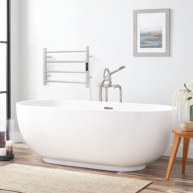 - [PREMIUM QUALITY WITH ELEGANT LOOK]: The bath towel warmer is made of durable 304 stainless steel, easy to clean and durable use. IP56 Waterproof standard and wall-mounted design maximizes your floor space.