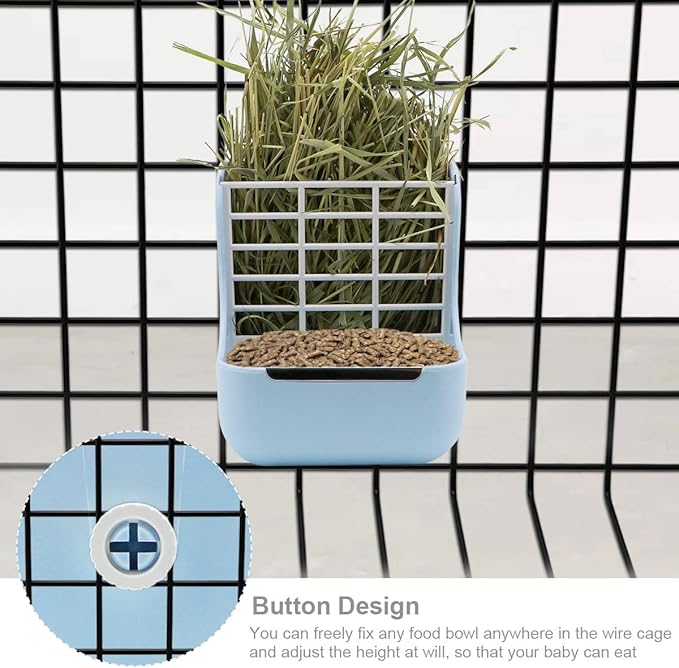 Litewoo Rabbit Hay Feeder Guinea Pig Feeder, 2 in 1 Automatic Small Animal Food Bowl Feeding Cage Accessories (Blue)