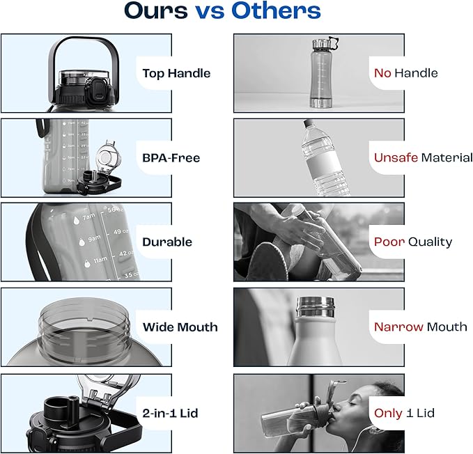 - Durable Material: The water bottle is made from BPA-free plastic and designed to be durable.