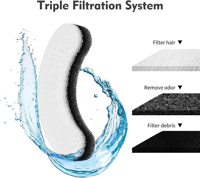 - Premium Filtration System: High-density and high-content activated carbon filter effectively to filter hair, heavy metals. keeping your pet's water clean and fresh.