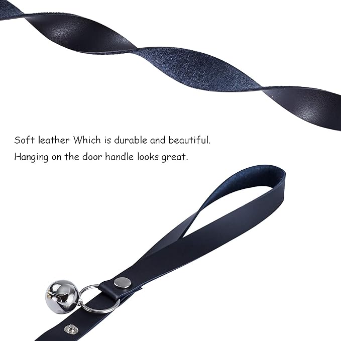 - If you do not want to install a dog door on your own door, this puppy bell will be a good choice, it is easy to use, just hang on the doorknob to start interaction with your puppy. Beautiful leather and bell can also serve as a nice decoration, if hanging the bell on the door handle causes inconvenience, you can buy our hook - B08RY66WD2, stick it in a suitable location to hang the bell.