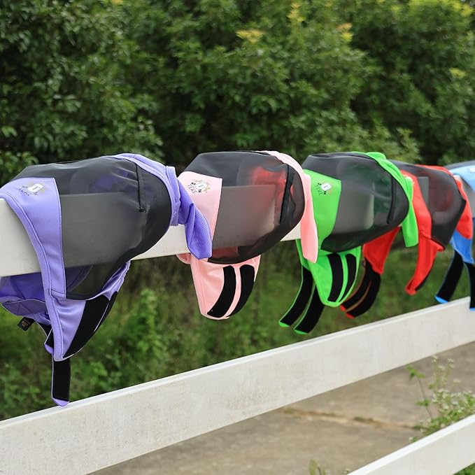 T TEKE Fine Mesh Horse Fly Mask w/Ears, UV Blocking 3D Eye Visor with Extra Fleece Cushioned Forehead, Protection from Insect Pests
