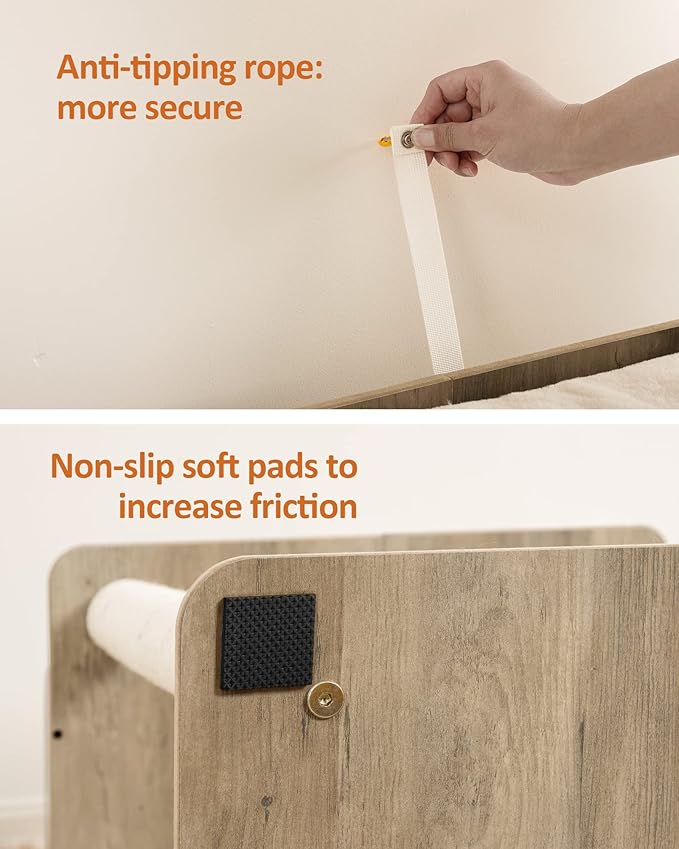 - Sturdy, stable and safe: with smooth veneer particle board for durability, an oversized base with non-slip mats, pure metal components and anti-tip kits, and then a selection of the most stable triangular structures, this cat scratching tree provides a safe habitat for your cats