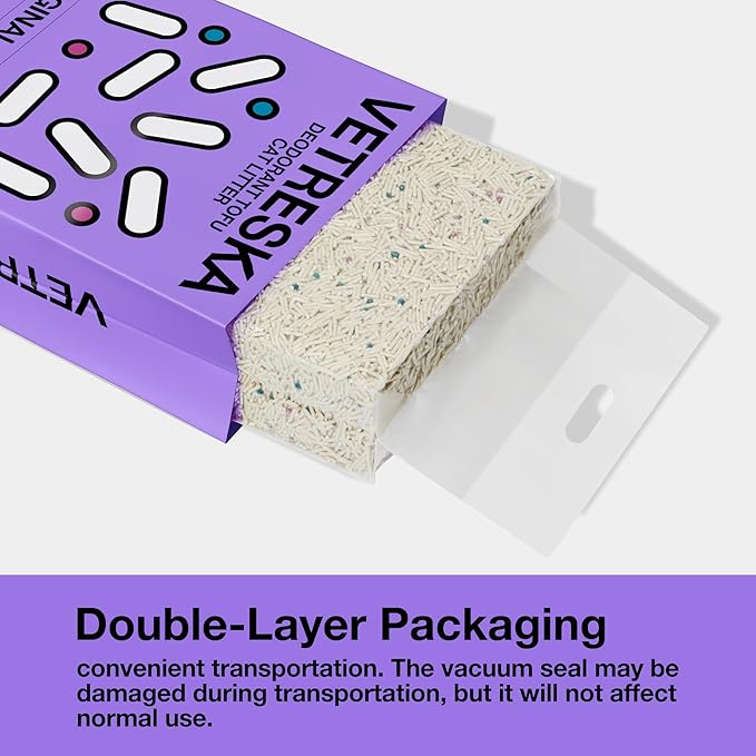 - 【Vacuum Packaging】 Our tidy cat litter is packaged in an inner vacuum package for secure transportation and easy storage. When you receive the package, it may initially appear solid like a brick, but simply open the inner bag and allow some air in. Within moments, the litter will loosen up and be ready for use