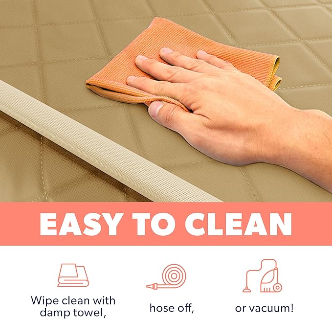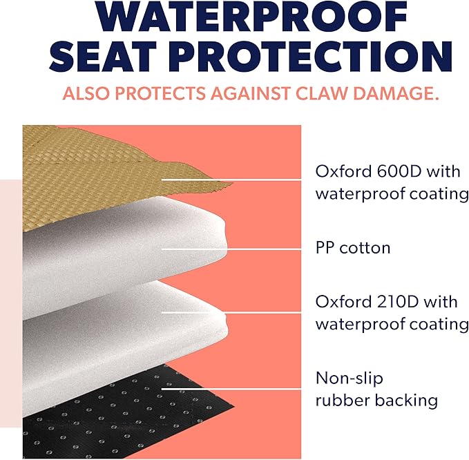 - EASY-TO-CLEAN MATERIALS รข Active Pets dog front seat cover is made exclusively from super easy to clean materials! Crafted with a top layer of premium 600D Oxford waterproof cotton and a middle layer of Oxford 210D with waterproof coating, your seats will remain clean no matter what. In case your pet has dirtied the seat cover, just wipe with a damp cloth or vacuum it and it will be new again in a minute!