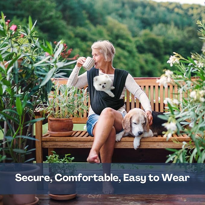- [SIMPLE SIZE & PERFECT FIT] Please measure your fullest part of your bust and choose your size on the size chart. There are two simple sizes, Regular (S~L) and Plus (XL~3XL). Regardless of your size, our dog carrying sling is designed as small dog carrier up to 20lbs(9kg). The 95% Cotton is extra soft, and the 5% Spandex gives the elasticity which allows our dog sling carrier for small dogs to conform to your pet's shape, ensuring maximum comfort for both you and your pet during use
