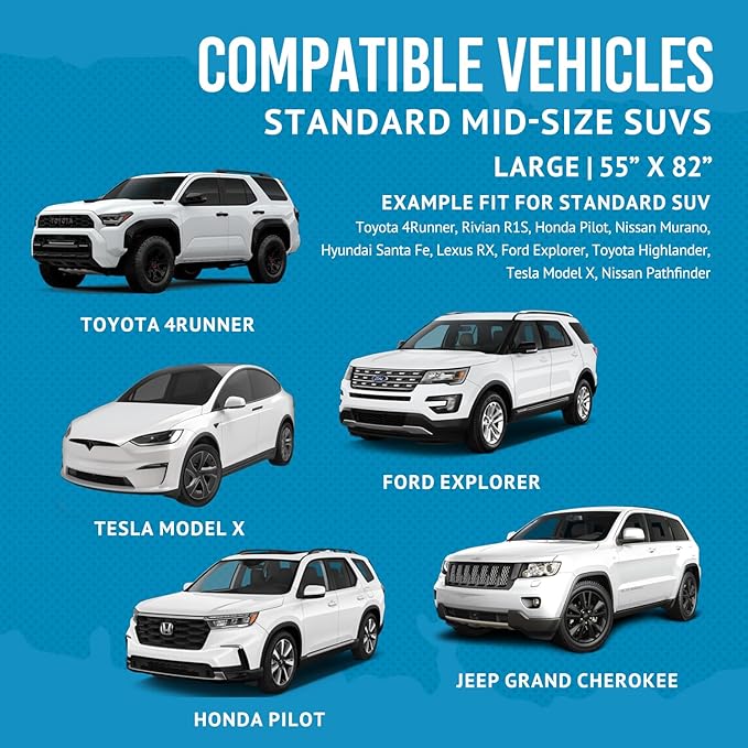 - Versatile Fit: Best cargo mats for back of SUV, these unique design cargo & trunk liner measuring at ( 55" x 82" ) inches. Bulldogology designed pet cargo seat covers to install and remove in under 30 seconds. Secure the covers with easy to use durable headrest adjustable straps, keep covers in place with moisture protection non-slip silicon backing. Each feature was manufactured for ease of use and added versatility.