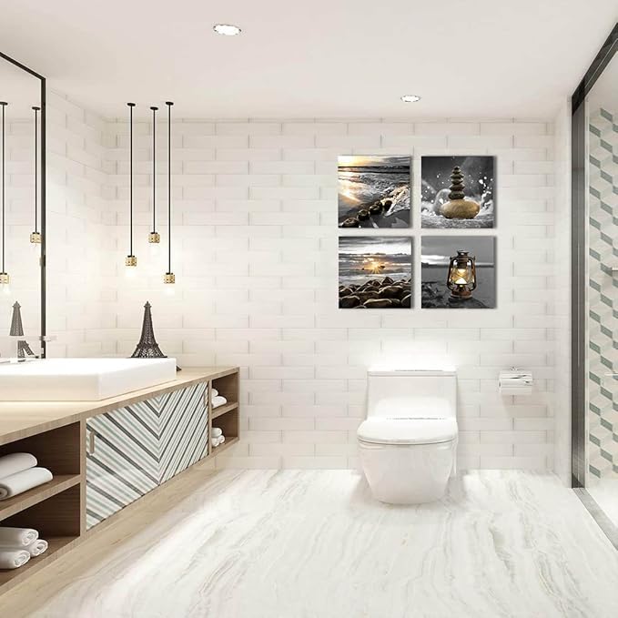 - 🌞Black and white canvas art CANVAS ART DESIGN:beach bathroom pictures for wall framed beach artwork wall decor is a great addition to your home office decor, bedroom, bathroom, living room, dorm room, dining room, glam room, beauty room, corridor, hallway wall decor.