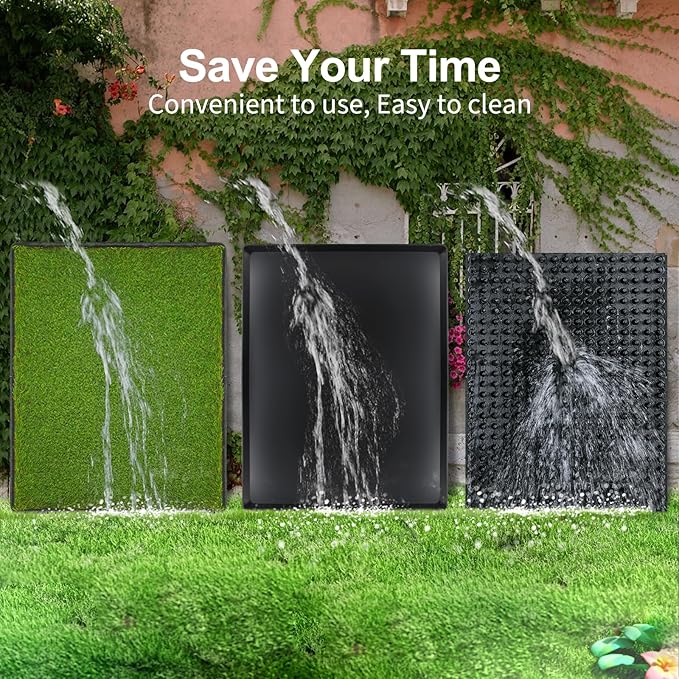 - Easy to Clean: The dog potty grass has a non absorbent property, which allows you to clean the grass pad in just a few seconds, making your cleaning work very easy,and two grass pads can be used alternately.
