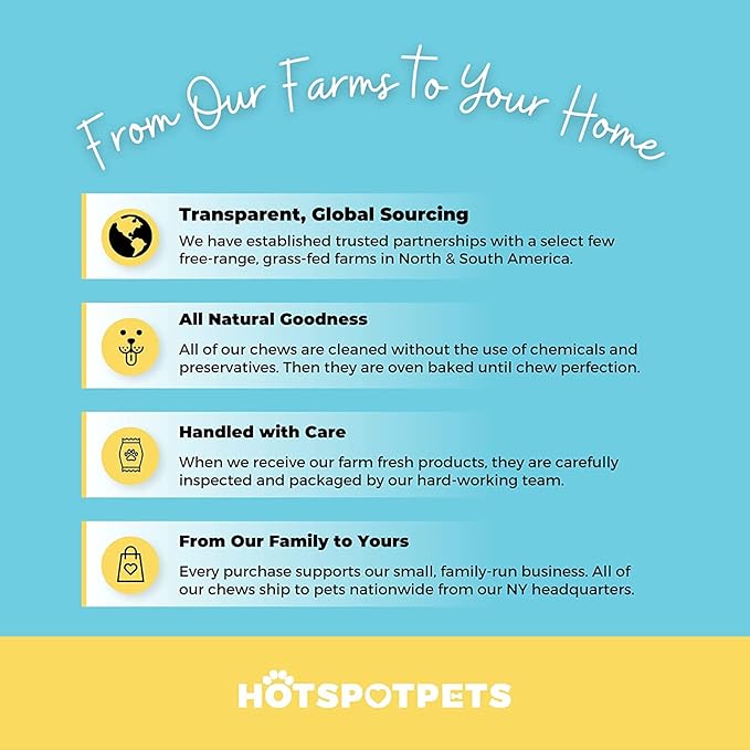- ONLY THE BEST FOR YOUR FURRY FRIEND – These premium healthy dog chews made from free-range, hormone-free grass-fed cattle. They are all-natural and contain NO chemicals or artificial ingredients. Each hoof comes trimmed and cleaned, ready for Fido to chow down on.