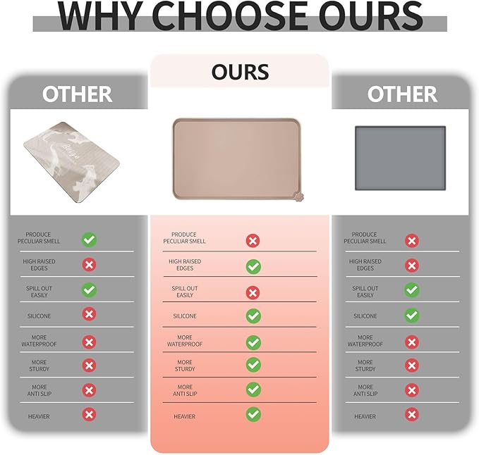 - Anti-slip design: our non-slip pet feeding mat ensures stability for your pet's bowl, preventing any water stains or spills on the floor. Enjoy peace of mind when feeding your pet, knowing that their food stays in place