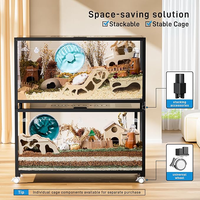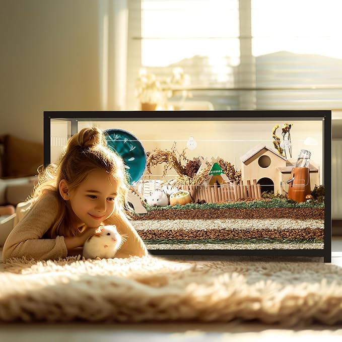 - 【Metal Structure & Chew Proof】We designed a metal frame combined with high-quality acrylic boards that achieve the structure stability of the cage, effectively preventing hamsters chew proof and escape-proof. 4 view windows that allow you to see your pets frolicking around in an environment designed to simulate natural conditionals from 360 angles. Water and rust-resistant that’s fairly easy to clean.