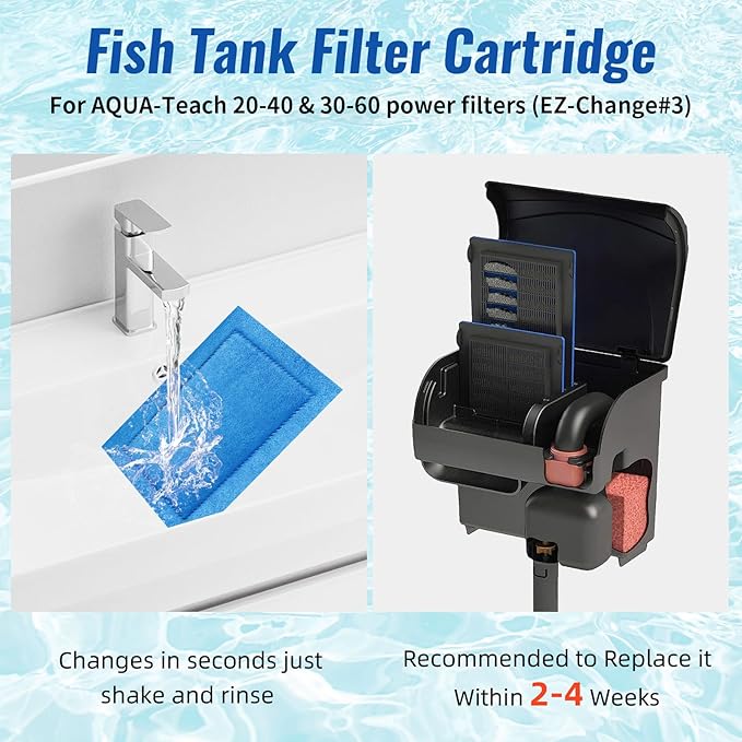 - To ensure optimal cleanliness, we recommend replacing the aquarium filter cartridges every 2 to 4 weeks