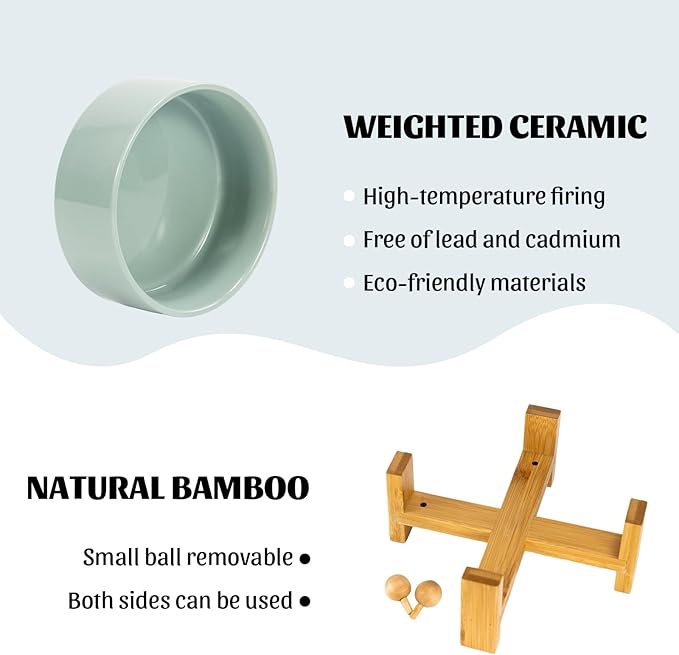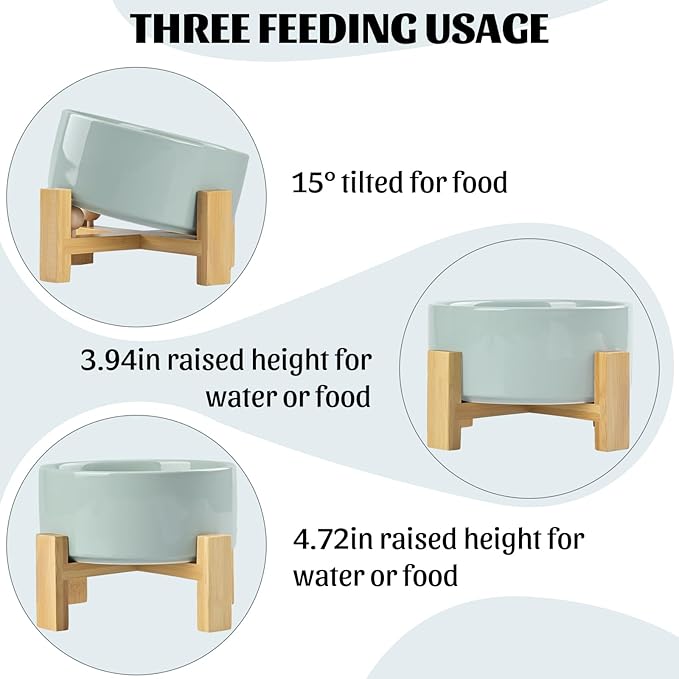 - CERAMIC MATERIAL: SPUNKYJUNKY Tilted Dog Bowl Set uses high temperature fired safe ceramics with a heightened wooden stand to provide a healthy feeding environment for your pet