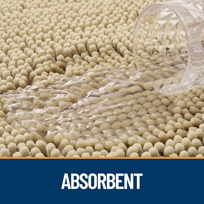OLANLY Dog Door Mat for Muddy Paws 70x24, Absorbs Moisture and Dirt, Absorbent Non-Slip Washable Doormat, Quick Dry Chenille Mud Mat for Dogs, Entry Indoor Entryway Carpet for Inside Floor, Beige