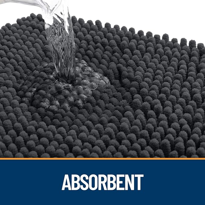 OLANLY Dog Door Mat for Muddy Paws 48x30, Absorbs Moisture and Dirt, Absorbent Non-Slip Washable Doormat, Quick Dry Chenille Mud Mat for Dogs, Entry Indoor Entryway Carpet for Inside Floor, Dark Grey