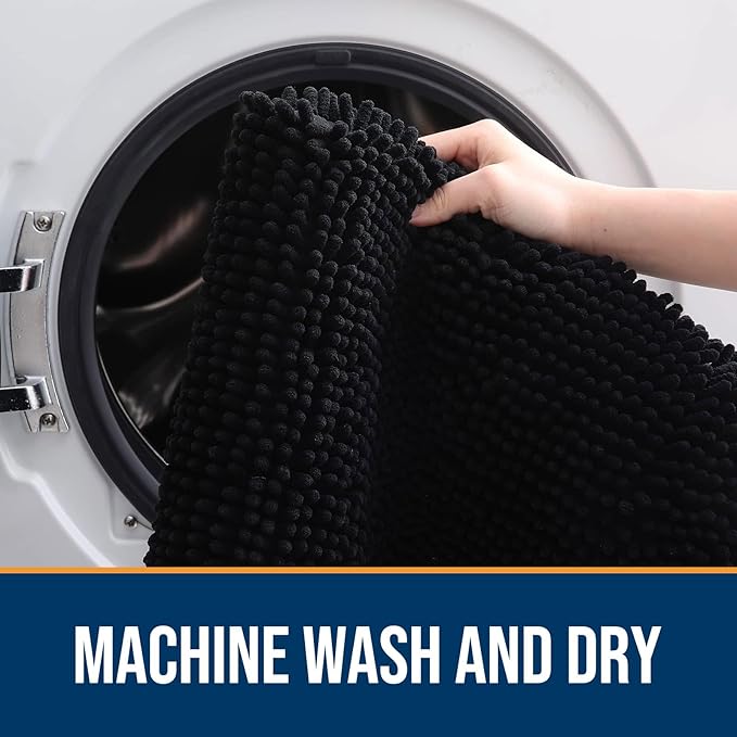 OLANLY Dog Door Mat for Muddy Paws 70x24, Absorbs Moisture and Dirt, Absorbent Non-Slip Washable Doormat, Quick Dry Chenille Mud Mat for Dogs, Entry Indoor Entryway Carpet for Inside Floor, Black