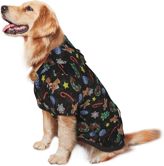Xmas Tree Reindeer Ginger Cookie Hoodie,Christmas Cosplay Dog Clothes with Pocket and Hat Winter Clothes Sweaters X-Small