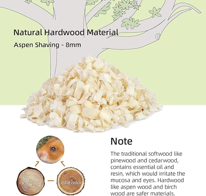 - [NO Dust & Keep Well-Being] The small animal aspen bedding is not dusty. It is perfect for a small pet which has sensitive respiratory tract. You can confidently put your pets on the aspen bedding in the cage without worrying about respiratory issues. Its smell is natural and no color added, even if furry friends as chewing toys will not cause danger. Keep your pet well-being while digging and playing.