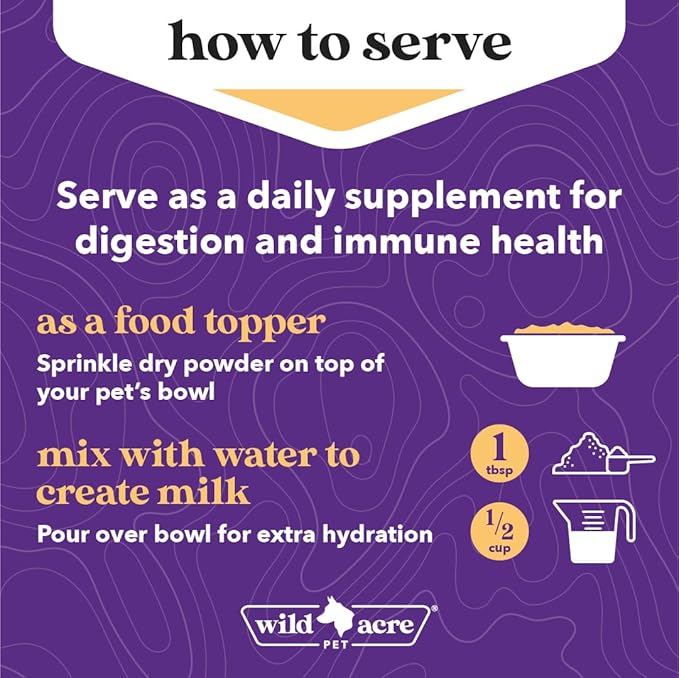 - THE WILD ACRE PROMISE: If you or your dog aren’t satisfied with Wild Acre’s goat milk powder, simply contact us directly and we’ll make it right. No tricks, No excuses.