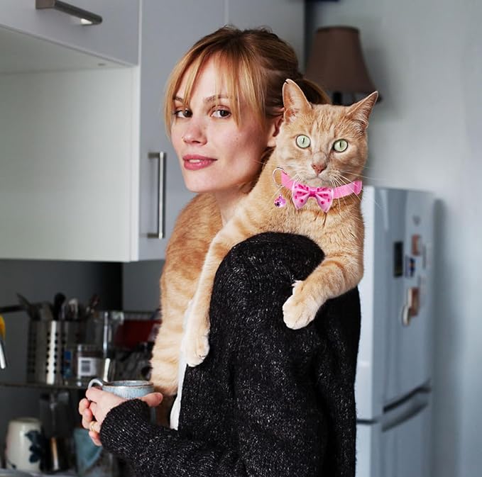 16 PCS Cute Cat Collars with Bells - Breakaway Collars for Girls & Small Kittens - Pink, Bowtie Design - Kitten Supplies