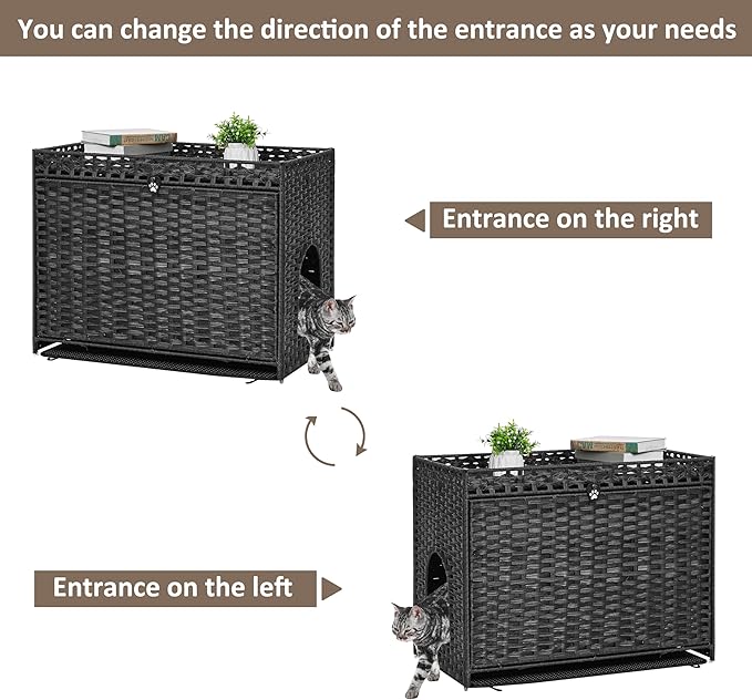 - 【Spacious room, Top fence design】Inner dimensions: 17.5” x 29.4” x 18.5”, it suits most litter boxes. The cat house is built with top rattan fence (height 2''), which can prevent pet bed from falling.