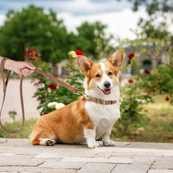 Didog Soft PU Leather Dog Collar, Stylish Quick Released Dog Collars for Medium Dogs, Easy Clean Adjustable Pet Collar for Daily Walking, Brown, M Fit 13-21" Neck