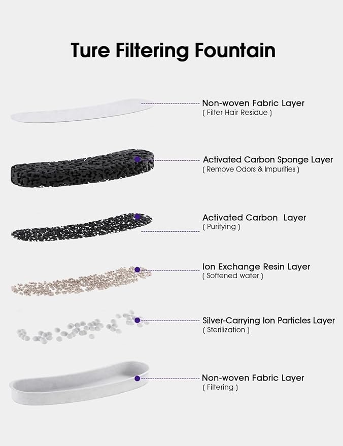- Usage Method-please rinse the carbon filter in water for 5 minutes thoroughly before use, then install the cat fountain filter into the cat drinking fountain.