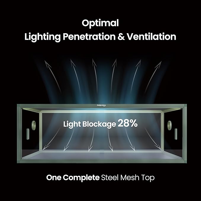- 【Highly Adaptive】Well-lit screen top with only 28% blockage. Compatible with many reptile accessories and equipment, such as heat lamps for reptiles, reptile humidifiers, reptile misters, reptile foggers, reptile UVA and UVB. Our reptile terrarium is great for holding temps and humidity.