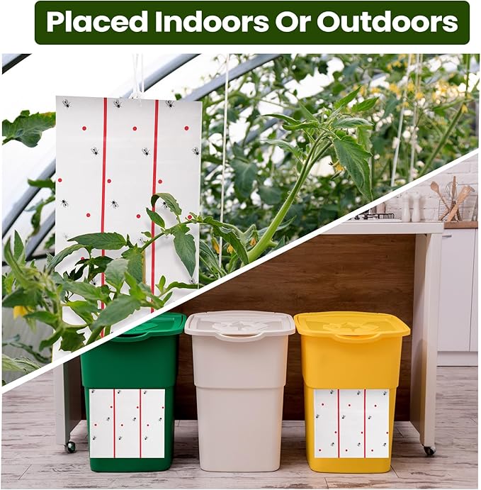 - Total Coverage: the sticky traps for gnats are suitable for different place, such as house, kitchen, yard, farm, horse stable, fruit stand, pantry and any place where annoying flies hover around; The fly paper can stick flies, fruit flies, gnats, aphids, moth, wasp, white flies, black flies, spider, midges, mosquitoes and so on