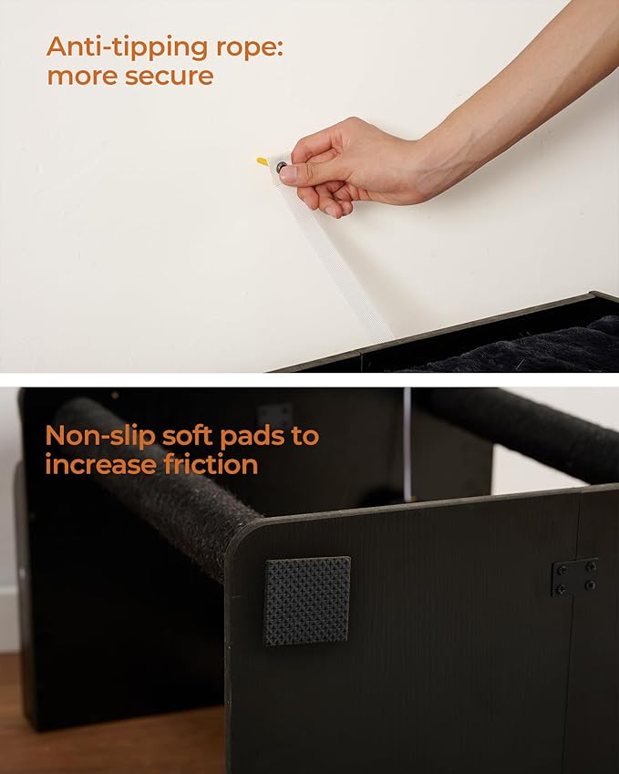 - Sturdy, stable and safe: with smooth veneer particle board for durability, an oversized base with non-slip mats, pure metal components and anti-tip kits, and then a selection of the most stable triangular structures, this cat scratching tree provides a safe habitat for your cats