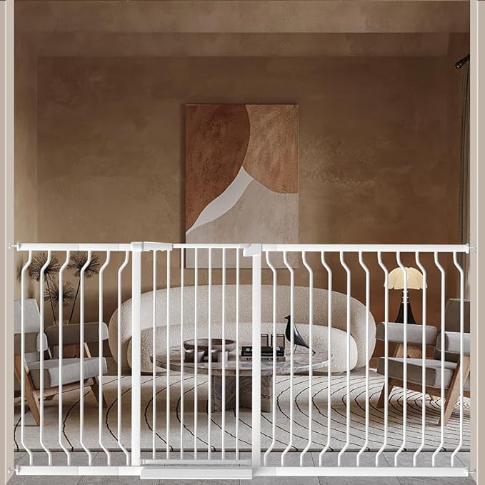 - 【180°Two-way Automatic】Our extra wide tall baby pet gate has a 180 °two-way opening design, which allows you to open in both directions for easy entry and exit.And tall pressure mounted baby gate will closes automatically when handle released, open from both sides. You can open and close this large baby gates with one hand for easy passage.