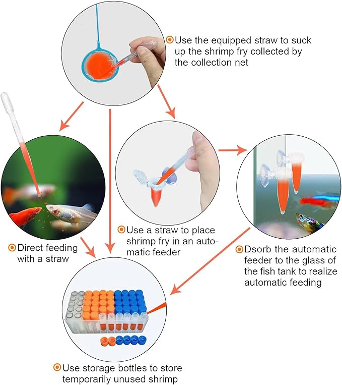 - 1. Fully equipped: This brine shrimp fry collection bottles set comes with a complete set of accessories for collecting, storing and feeding after the brine shrimp is hatched.