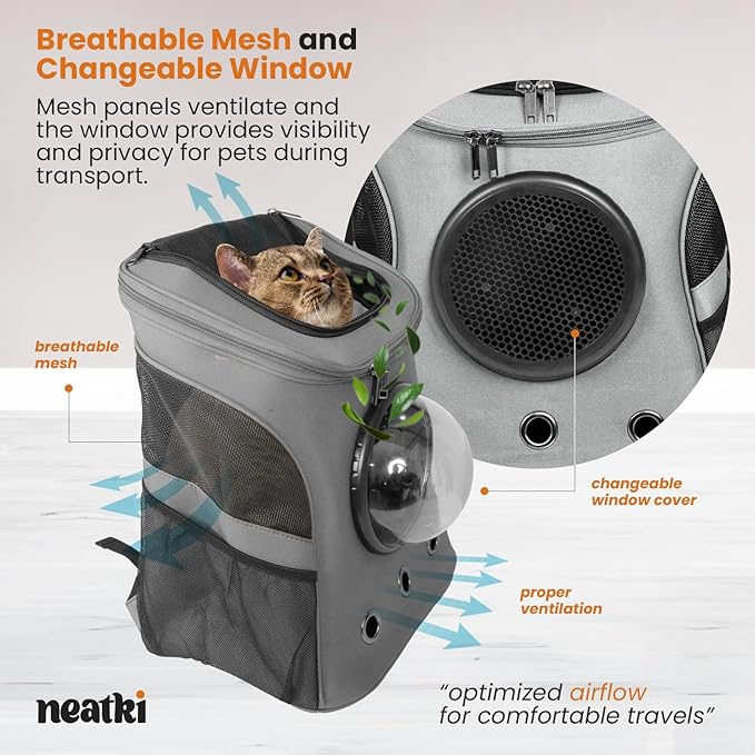 - Durable and Adjustable Window Cover โ The large cat backpack carrier and dog carrying backpack come with adaptable window covers, letting you choose between a clear view or a breathable option with holes. Made from premium oxford material, it's both stylish and durable, resisting wear and tear.