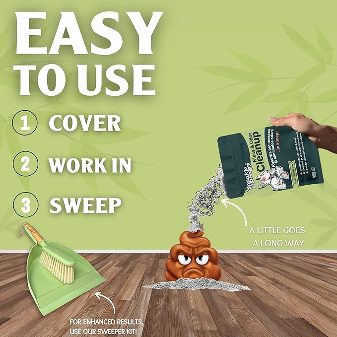 Sprinkle & Sweep Pet Accident Cleanup for all Hard Surface - Non Toxic Quick Pet Mess Cleaner & Odor Remover for Urine, Poop, Vomit, Diarrhea & Potty Training, Travel Pack (4oz)