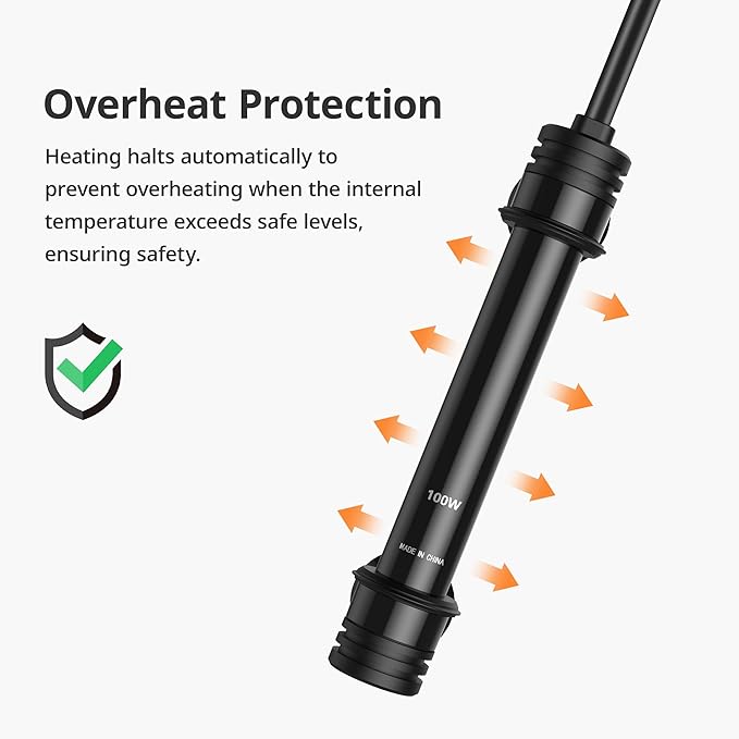 - Overheat Protection: The heater automatically turns off when water temperature exceeds 98โ(36ยฐC) to prevent overheating, ensuring safety