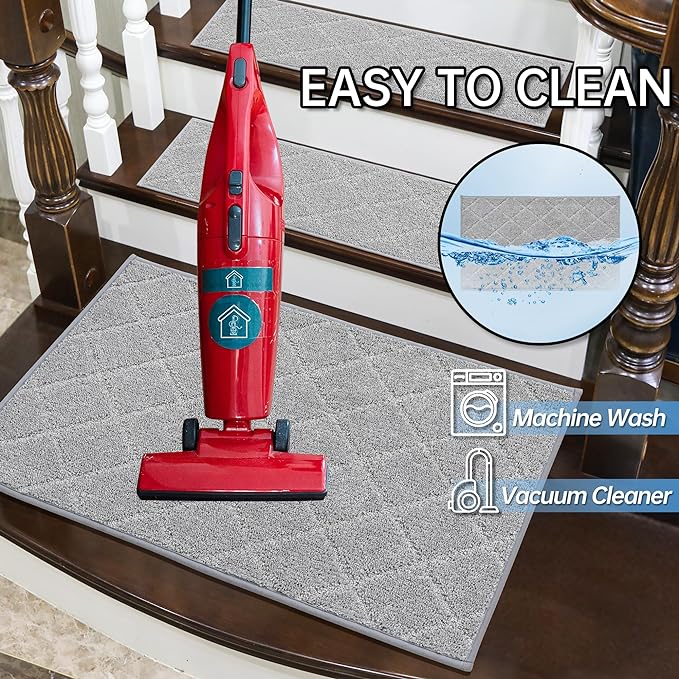 - NON-SLIP STAIR RUG: Multi-purpose Stair mats to use the TPE Non-Skid backing on dry floor, helping it to stay in place on your floor, it won't slip or scuff floors. Low profile design so doors won't get stuck.Perfect for homes with pets (dogs or cats) or kids.