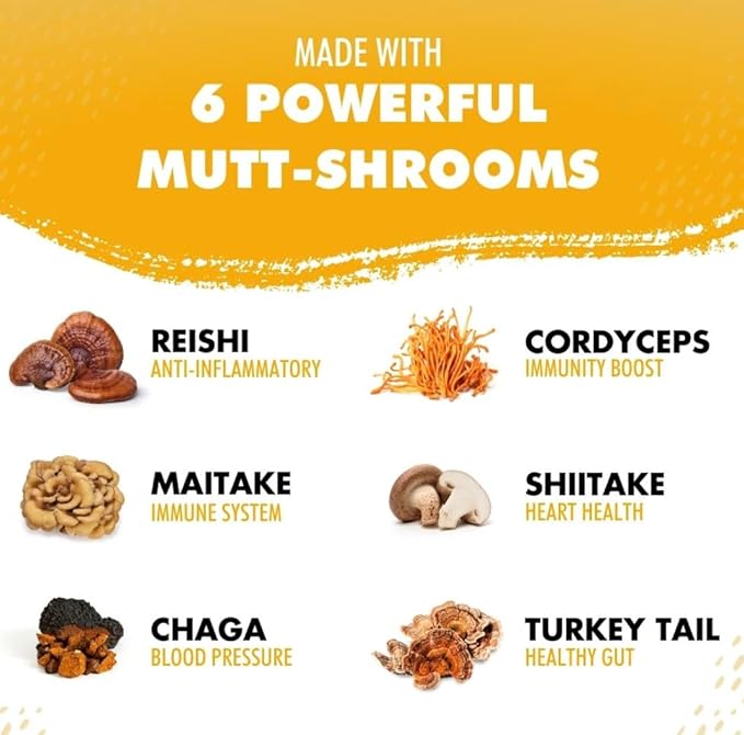 - Our proprietary mushroom blend includes 6 different types of mushrooms (including Turkey Tail) known for their anti-inflammatory and immunity boosting properties including organic shiitake, organic chaga, organic turkey tail, and reishi.