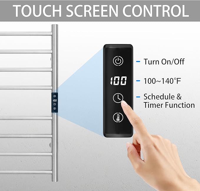 - [TOUGH SCREEN CONTROL]: Manually to turn on/off anytime. Countdown Timer function from 1 hour to 8 hours. Temperature control from 100ยฐF to 140ยฐF.