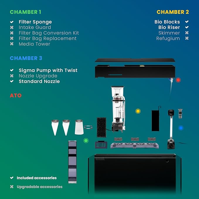 - Included Components : 1x UNS Rimless Tank, 1x Leveling Mat, 1x Media Riser Tray, 1x Filter Sponge, 2x UNS Bio Brick (Filter Media Block), 1x Submersible Water Pump, 1x Outflow Nozzle, 1x Back Chamber Lid 1x UNS Rimless Tank, 1x Leveling Mat, 1x Media Riser Tray, 1x Filter Sponge, 2x UNS Bio Brick (Filter Media Block), 1x Submersible Water Pump, 1x Ou… See more