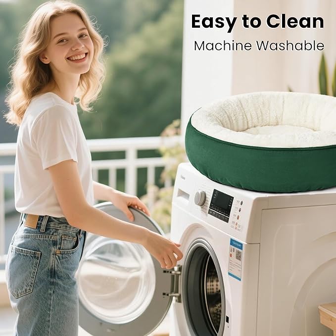 Love's cabin Round Donut Cat and Dog Cushion Bed, 25in Pet Bed for Small or Medium Dogs, Anti-Slip & Water-Resistant Bottom, Soft Durable Fabric Pet Beds, Washable Calming Cat & Dog Bed Green