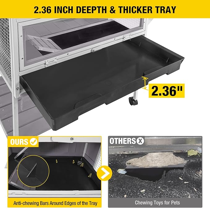 - Mouse cage with DEEPER plastic tray,it will never leak or go mouldy.Wire side panel easy for the water bottle hang on.