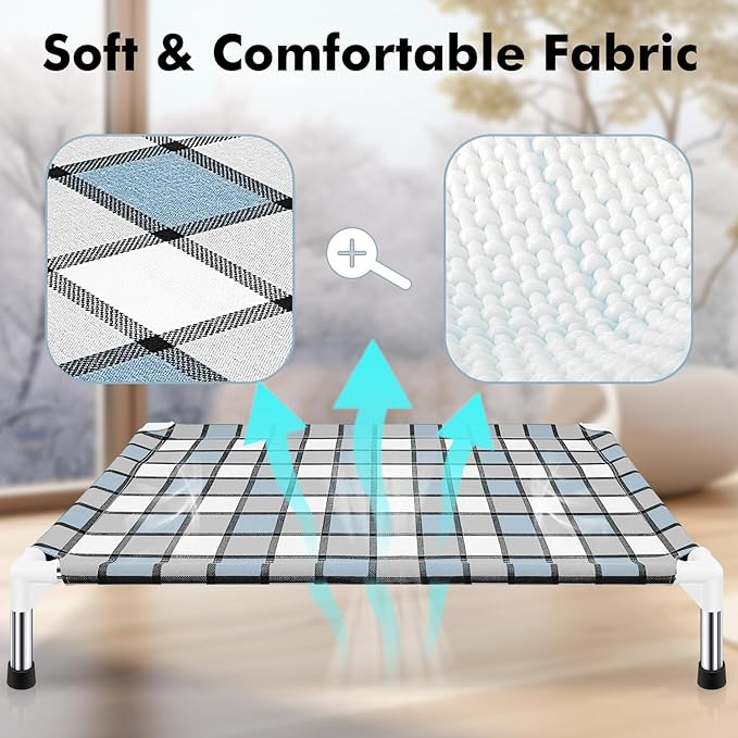 - 【Stylish Design of Dog Beds】Not only prioritizing comfort, our raised dog beds also emphasize stylish design. The minimalist blue and white grid design concept makes it an integral part of home decor, adding a unique touch of sophistication to your household.