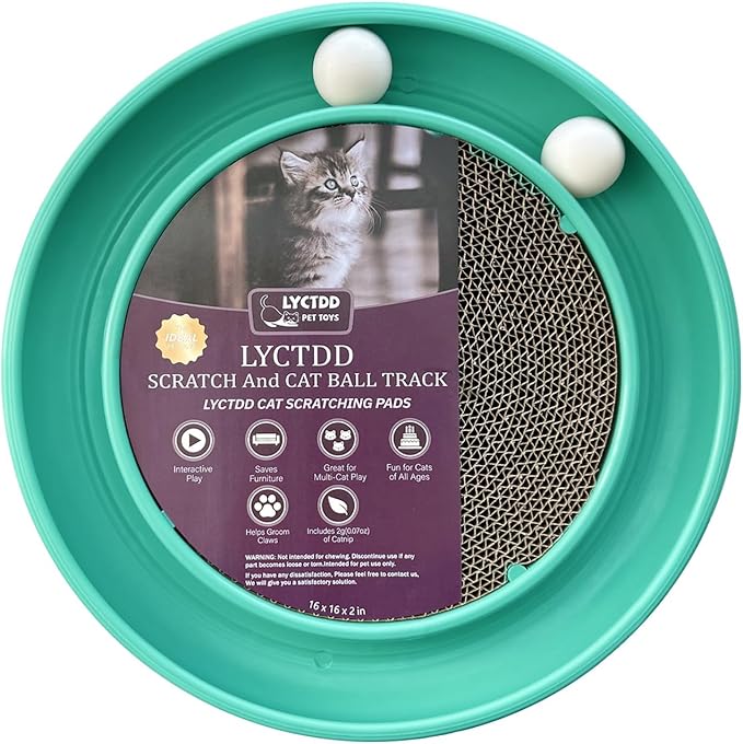 - 【Cat Scratching Board Set】:The round cat scratcher toy comes with 1 cat ball track base (16 inches in diameter),Toys for all kinds of big and small cats,1 round cat scratcher refill (11 inches in diameter),2 rolling cat toy balls,Preventing Loss,that keeps your cat entertained for hours.