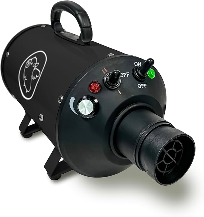 Flying Pig High Velocity Dog Pet Grooming Dryer w/Heater (Flying One, Black w/White Logo)