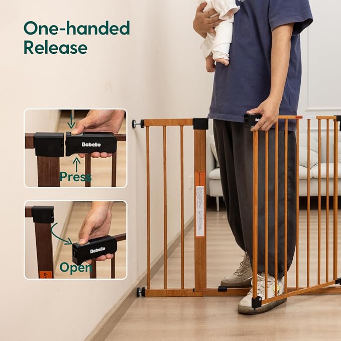 - AUTO-CLOSE FEATURE โ For added hands-free convenience, the child gate is equipped with an auto-close feature that when the angle is less than 90 degrees, the gate will automatically close and stay open at angles greater than 90 degrees.Adults can easily open using one hand but it is difficult for babies.